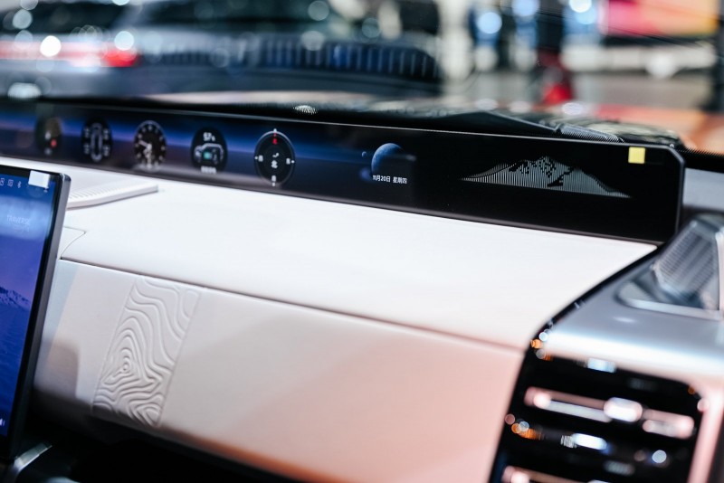 在内饰设计上,纵横G700采用东方美学的设计,以喜马拉雅山脉为灵感,珠峰8848等高线纹理与图腾徽章贯穿座舱。纵横G700配备了35.4英寸纵横天际屏、15.6英寸高清中控屏、17.3英寸悬浮吸顶屏以及8.8英寸后排空调屏,四屏联动构建了多维度沉浸式智能交互体验,不仅提升了车内的科技感,更为家庭出行场景赋能。相比之下,坦克500虽然也有悬浮娱乐屏,但缺少整车后排娱乐屏幕联动,少了些科技感。