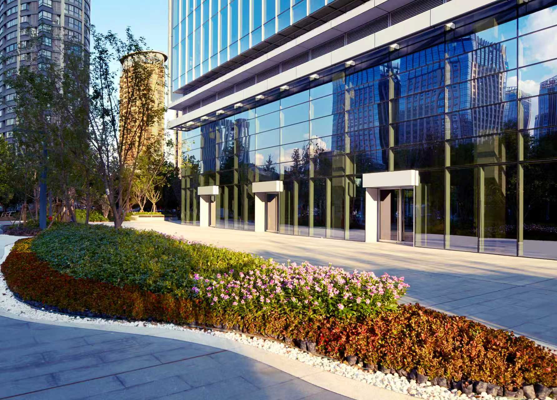 大楼的北入口外是永利特有的楼宇自建绿化空间,高低错落的观赏树木、精心打理的草坪与水系、舒适的座椅,共同造就了一方“世外桃源”,休闲其间,仿佛置身于“花园城市”,30%的绿化覆盖率,恰似永利国际金融中心对所有入驻者最长情的告白。