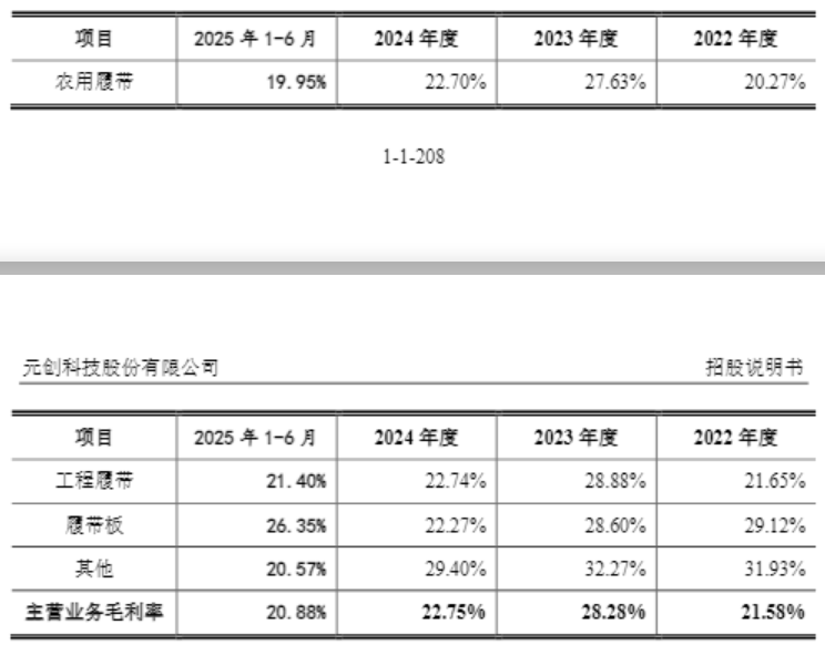 招股说明书显示,元创股份的主营业务为橡胶履带类产品的研发、生产与销售。公司前身“三门胶带厂”于1991年设立,初期主营橡胶V带,产品主要应用于缝纫机的动力传输。在长期行业经验积累基础上,公司逐步启动新产品研发试制,完成了从通用胶带向专业橡胶履带制造商的战略转型。