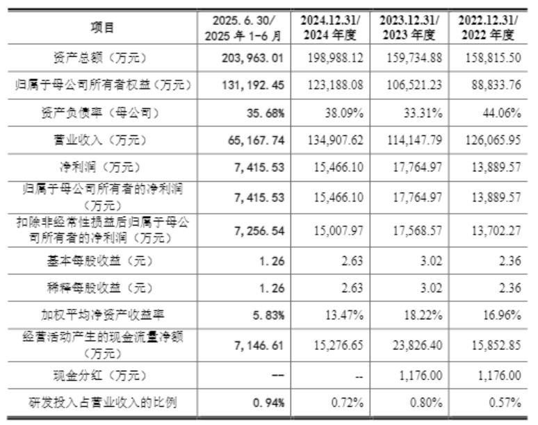 表:元创股份2022年至2025年上半年主要财务数据和财务指标