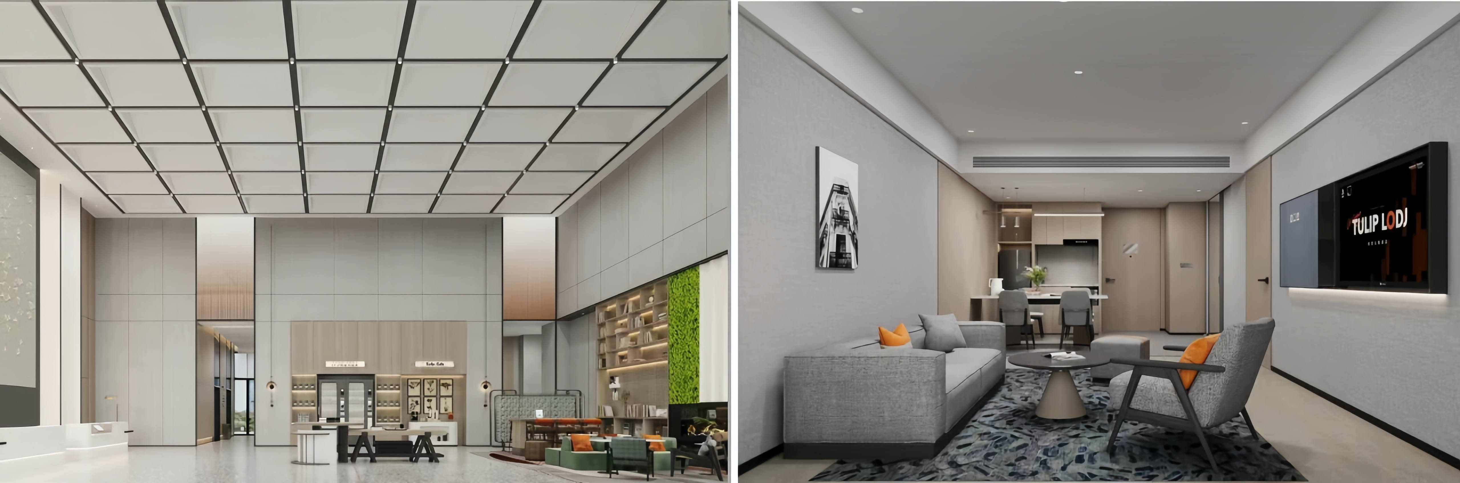 同时,这类项目层高条件适配住宿需求,商场常达4.2m、甲级写字楼层高普遍较高,改造客房不会压抑。借助装配式架空地坪等技术,可高效解决酒店排水等核心问题。