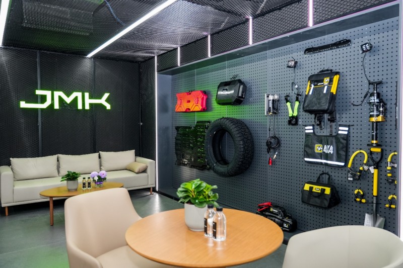 特别规划的亲子互动区与越野改装区。前者精准匹配家庭用户出行需求,为亲子时光营造温馨惬意场景;后者汇聚专业改装配件与定制旅行产品,二者在视觉上相互呼应、功能上互补协同,直观演绎“从CBD到无人区”的多元生活主张。这种场景化设计,既蕴含越野探索的硬核力量,又饱含细腻温情的生活温度,让每一位进店者都能沉浸式感知“从容”的精神内核,尽显张弛有度的生活态度。