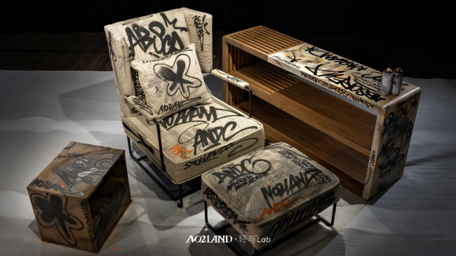 12月26日至28日,在北京湾里·王府井WellTown开业期间,商场一楼的NO2LAND艺术展厅里,一张名为“克制与自由”的三人沙发吸引了不少人驻足打卡。它线条简洁,却披着一身自由奔放的涂鸦色彩,安静地摆在那里,却仿佛自带话题与温度。这张沙发,是美研国际旗下品牌轻与Lab与艺术空间NO2LAND共同打造的跨界作品,也是国内涂鸦艺术家ANDC的一次家居“画布”实践。