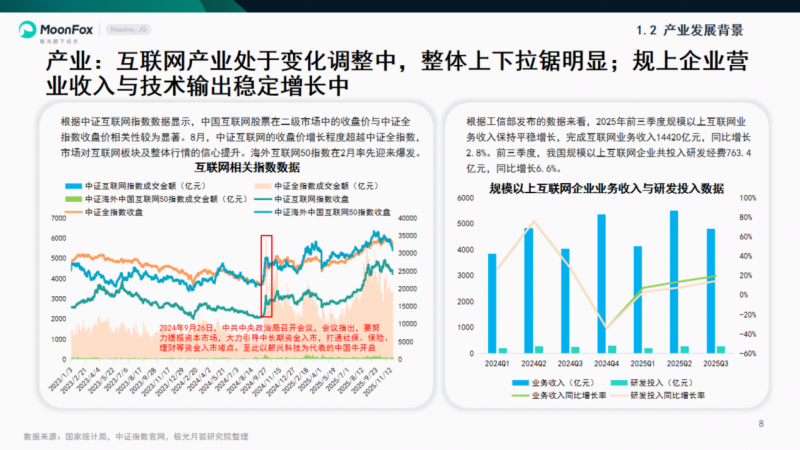 1.2.1 产业:互联网产业处于变化调整中,整体上下拉锯明显;规上企业营业收入与技术输出稳定增长中