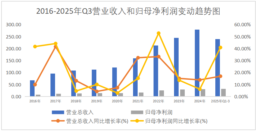 2025年Q1-3营业收入和归母净利润分别增长16.86%和40.85%,主要是因为传统制冷业务和汽车热管理业务稳健增长,液冷和机器人业务突破即将进入收获期等多因素综合影响。