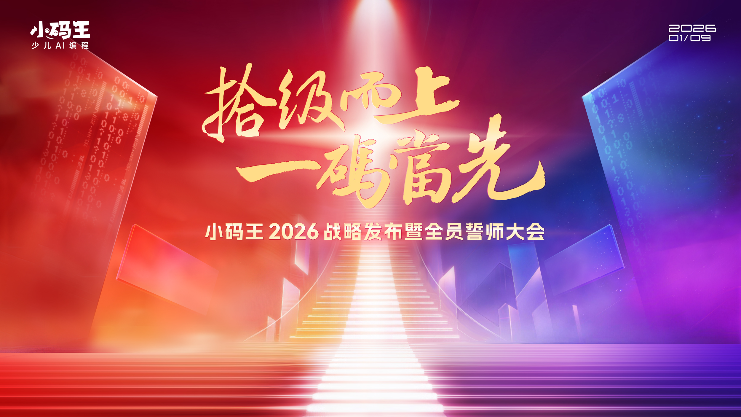 2026年1月9日,少儿编程教育头部品牌小码王以“拾级而上,一码当先”为主题,召开全国联动的战略发布暨全员誓师大会,正式官宣“AI时代科技教育引领者”以及“AI时代,看见每个孩子的思维力”的品牌定位体系,同步发布四大核心战略战役,以十年积淀的硬实力,剑指新十年行业引领目标,引发教育界与投资圈高度关注。