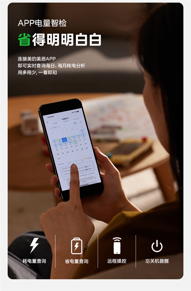 更令人称道的是,它通过AI算法将全屋温度波动控制在小于0.2℃的范围内。这一技术突破直接回应了用户对于“省电带来温度波动大”的担忧,在提升节能效果的同时,确保了舒适度不打折。配合行业最大的1.6亿用户数据支持和OTA自升级功能,系统实现“越用越懂你”,“越来越聪明”。此外,电量可视化的功能让省电效果一目了然。有用户实测反馈:“以前开一晚普通空调,电费可能要十几块甚至更多,心里总是没底;现在用美的酷省电二代,制冷直接省电40%,制热直接省电30%,APP上不仅能看实时用电量,还有详细的省电报告,效果很明显,让人很安心。”