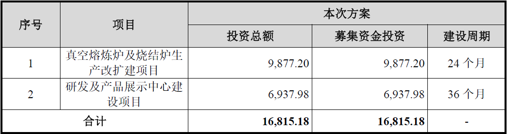 从上表可见,发行人本次仅募投2个项目,除第2个研发及产品展示中心建设项目较为普遍外,能体现发行人本次上市合理性的项目为第1个“真空熔炼炉及烧结炉生产改扩建项目”,但比较结果显示其合理性可能仍然存疑。
