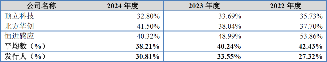 招股书中披露的发行人毛利率与可比公司比较情况,如下表所示: