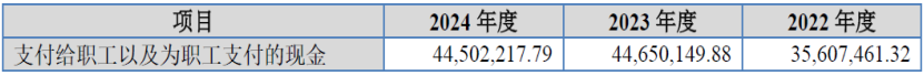 虽然发行人的人工成本数据因长验收周期而存在反映滞后,或在权责发生制下与会计周期匹配度不高问题,但从收付实现制角度来看,发行人人工成本仍然存在匹配度可能不高的问题。发行人合并现金流量表中各期人工成本现金流量额,如下表所示: