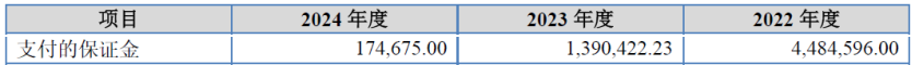 此外发行人支付的保证金情况,与收入持续增长的趋势也不一致。招股书中披露的支付的其他与经营活动有关的现金中的保证金情况,如下表所示: