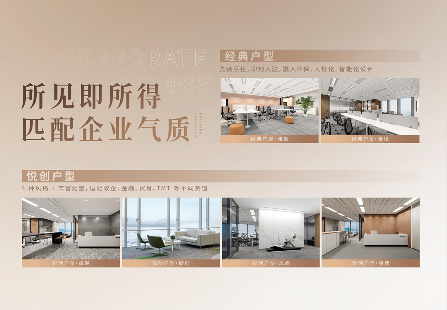 以广州ICC为例,一处不规则空间被优化为三个独立户型:“经典户型”主打“先装后租、即刻入驻”,适配中小企业快速落地;两大“悦创户型”通过差异化内装与功能分区,满足创新型企业、政企及金融类企业的规模扩张与业务迭代需求。