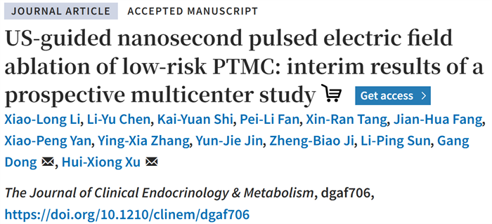 就在这时,一项由中国6家医院共同开展的前瞻性多中心临床研究取得重要突破,为低危PTMC患者提供了新的治疗选择——纳秒刀非热消融技术首次应用于甲状腺癌治疗并获得积极成果。该研究近日发表于国际权威期刊《临床内分泌学与代谢杂志》《Journal of Clinical Endocrinology & Metabolism》(J Clin Endocrinol Metab),不仅证实了纳秒刀治疗低危PTMC的安全性和有效性,更开辟了甲状腺癌“精准微创、保腺保功能”的全新治疗路径,为未来门诊化治疗模式奠定了坚实基础。