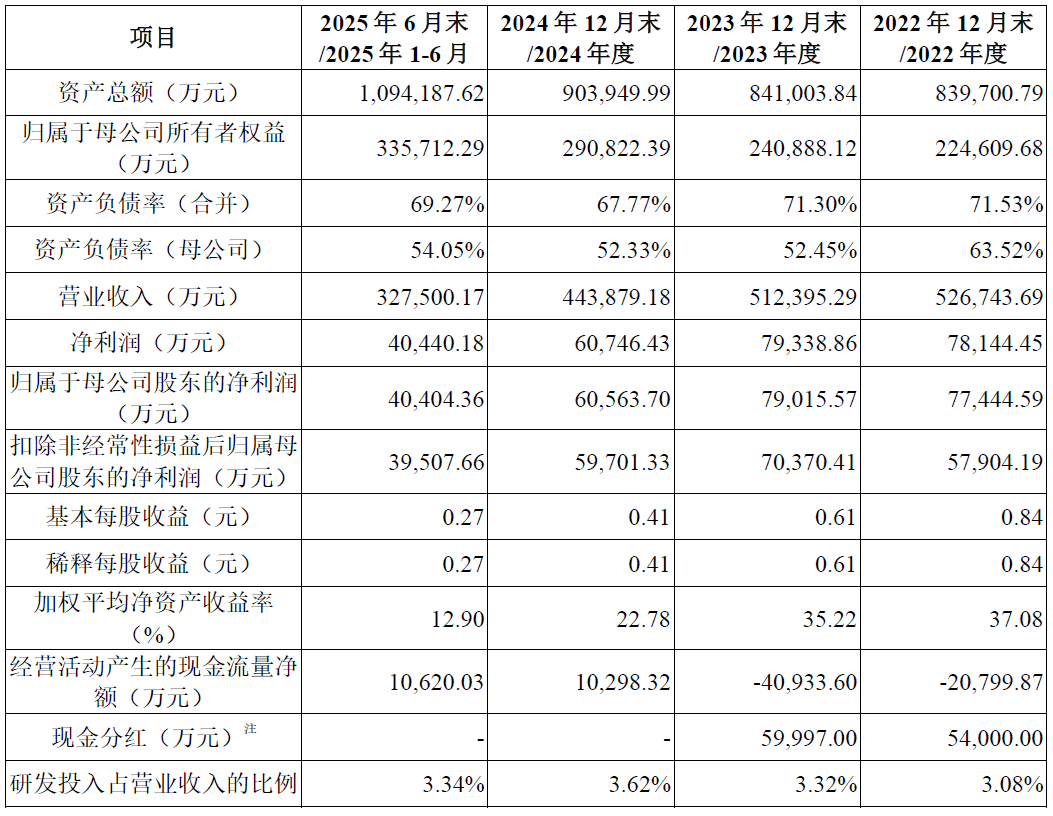 振石股份始终重视研发投入。2022年至2024年及2025年上半年,公司研发费用分别达到16,228.52万元、17,002.49万元、16,057.84万元及10,925.13万元,对应研发费用率依次为3.08%、3.32%、3.62%和3.34%,充分体现了公司对核心技术的持续深耕。