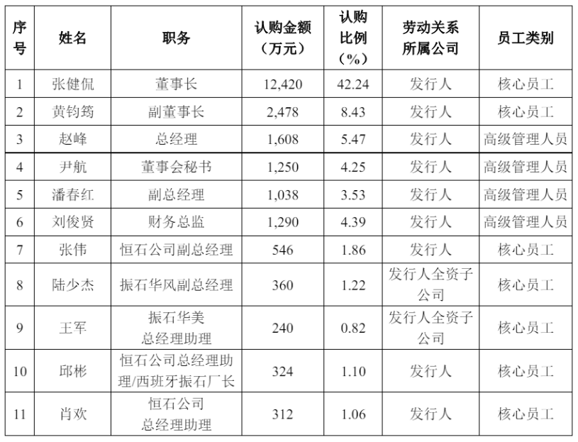 表:中信证券资管振石股份员工参与主板战略配售1号集合资产管理计划认购名单(部分)