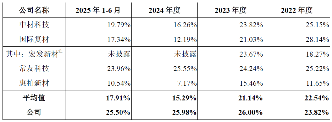 公司的盈利质量同样可圈可点。2022年至2024年,振石股份的主营业务毛利率从23.82%提升至26%左右,显著高于行业平均水平。即便2025年上半年主要原材料玻璃纤维采购价格有所上升,公司毛利率仍维持在25.50%的高位。