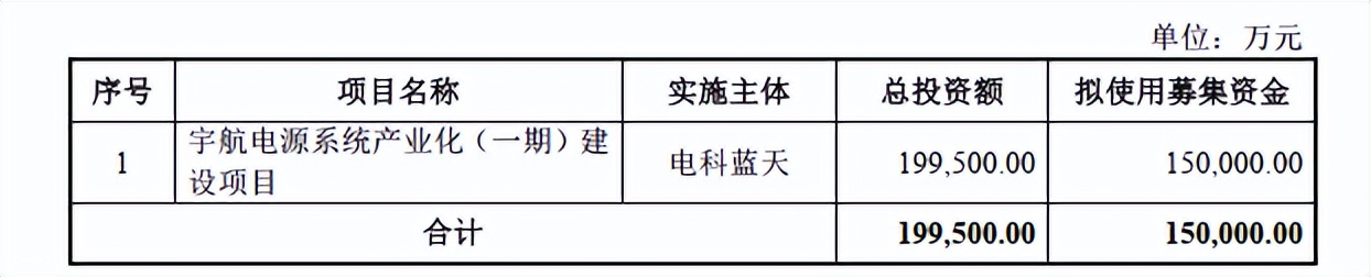 募集资金全部用于宇航电源系统产业化建设