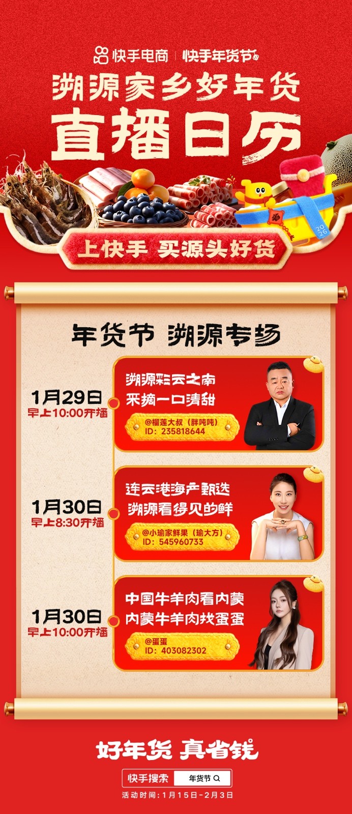 年味正在被重新“搬回”源产地。这个年货节,快手电商围绕“好年货 真省钱”的主题,鼓励平台主播走进特色年货产业带,用溯源直播的方式,把产地、工艺与真实场景带进直播间,让用户看见年货从哪里来、为什么好。