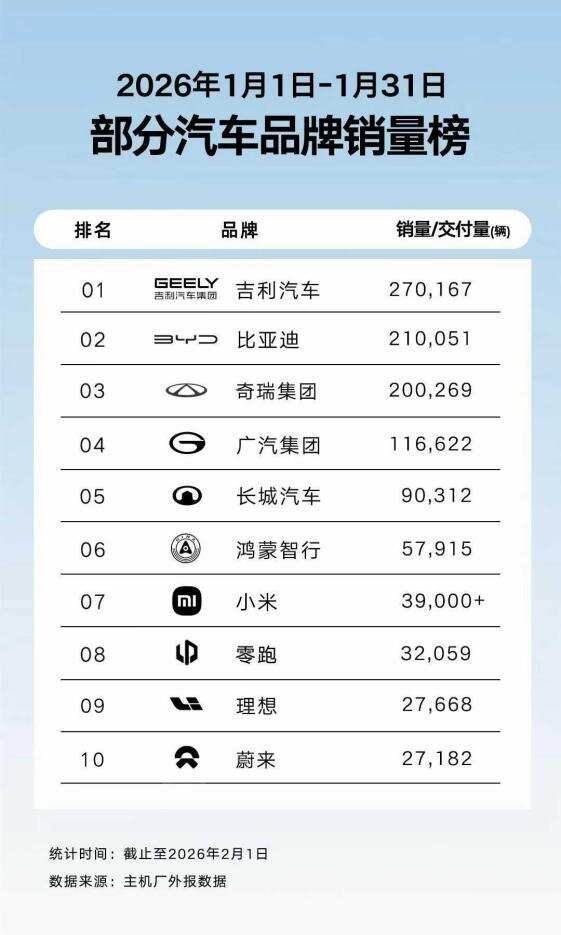 吉利无疑开了个好头。以突破27万辆的乘用车市场表现,摘得中国品牌车企销量排名的第一位。无论是产品矩阵的完善、技术壁垒的构建,还是全球化布局的提速,都为吉利汽车2026全年345万辆、控股瞄准2030年650万辆的目标,提供了有力支撑。