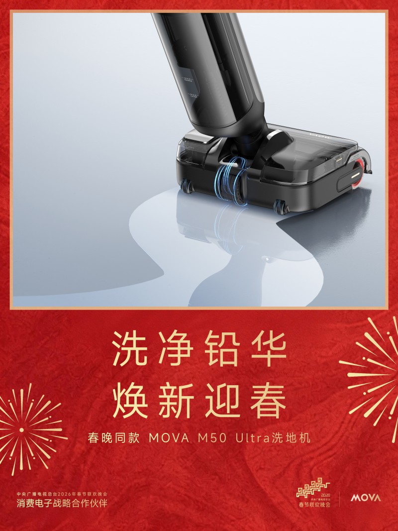 2026年除夕夜,MOVA洗地机出现在总台春晚小品《你准喜欢》的节目场景中。没有刻意的广告词,没有生硬的展示,它被演员顺手拿起洗地机,像任何一个家庭日常使用的电器一样自然。但这个画面背后,藏着MOVA这家公司两年来的野心:先在海外市场杀出一条血路,再带着硬核技术和产品力杀回国内,登上最高国民舞台。