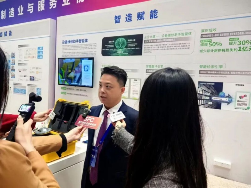 在“广东省制造业与服务业协同发展典型案例展”上,树根科技工业智能体产品负责人黄胜辉介绍了树根科技的工业智能在实际场景中的落地应用,其中树根科技企业大脑的最新研发成果——设备维修助手智能体,以智能诊断、智能翻译、智能检索三大引擎跨越技能、语言和数据鸿沟,破解“中国制造出海最后一公里的服务难题”。目前,设备维修助手智能体已在三一集团、福龙马集团、盛宏电子及泰国Leadway等海内外企业落地,故障诊断时长缩短50%,维修效率提升30%,助力中国企业从制造出海迈向服务全球,打造全球化的智能化服务平台。