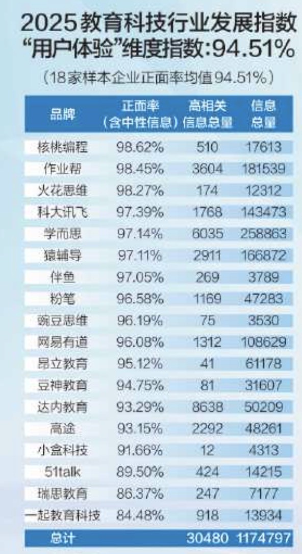核桃编程获得2025 教育科技行业发展指数-「用户体验」维度教育行业排名第一