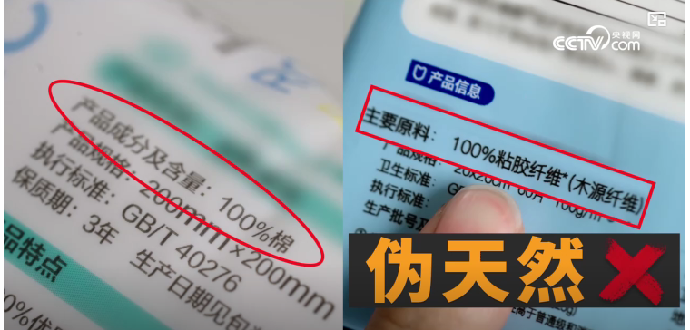 然而,“棉柔巾”和“绵柔巾”只有一字之差,却完全不同。部分商家很早就在宣传上混淆这两者,让消费者误以为“棉”的柔巾就一定是纯天然植物的,实则部分“棉柔巾”使用的是化学纤维。