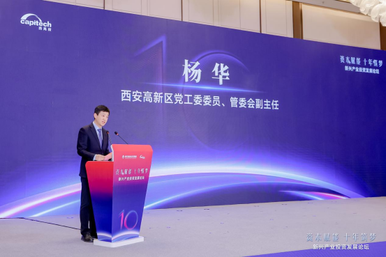 会上,西安高新区党工委委员、管委会副主任杨华发表致辞。他表示,高新区作为省市创新发展排头兵,始终以发展新质生产力为高质量发展核心抓手。新兴产业基金的十年实践,正是高新区金融赋能科创、资本培育产业的生动缩影。未来高新区将持续优化创新生态,支持基金做强做优。希望新兴产业基金乘势而上,携手各方力量共同迎接下一个丰收的十年。