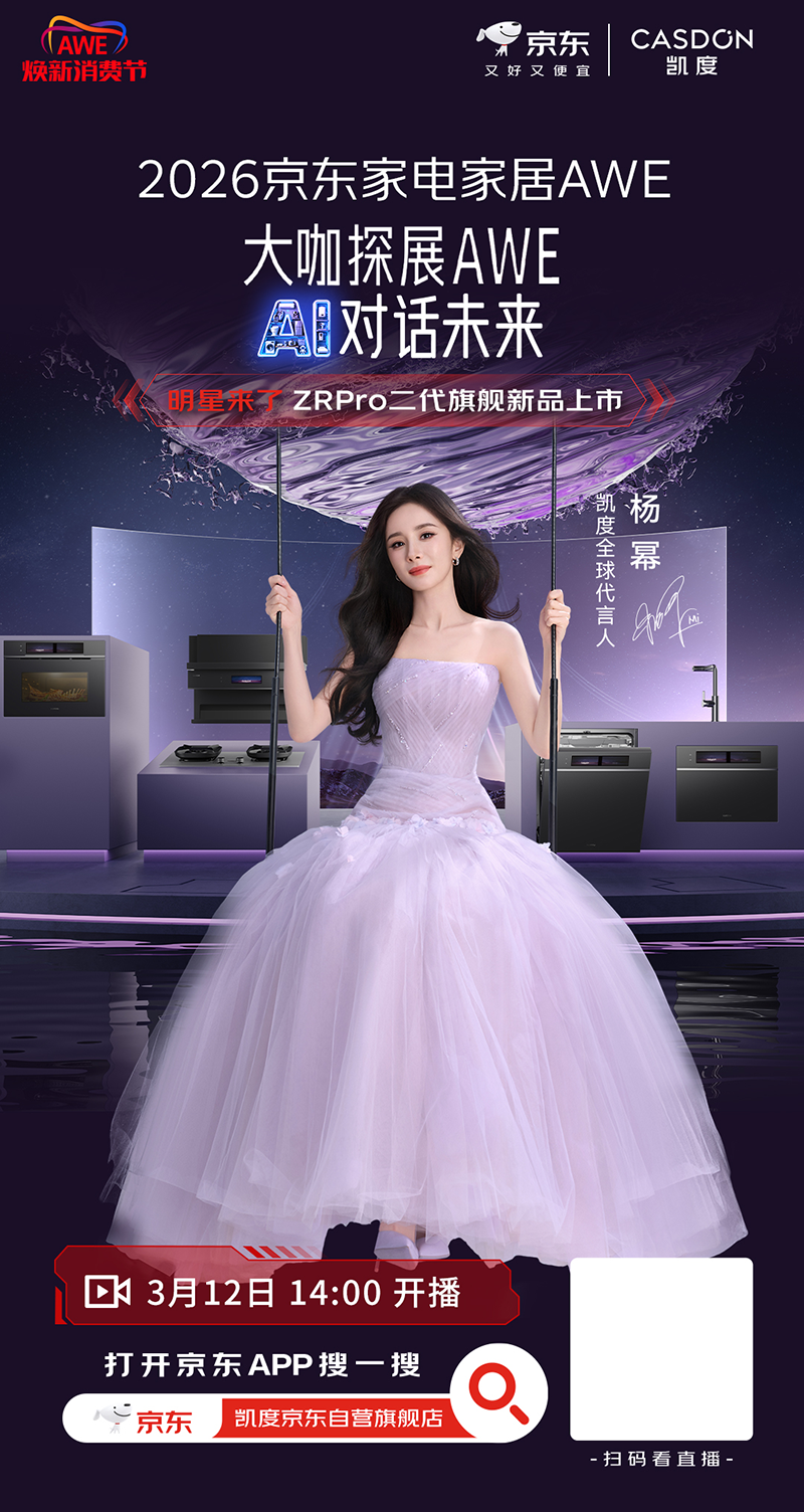 3月12日-15日,2026年中国家电及消费电子博览会(AWE 2026)将在上海盛大开幕。展会期间,京东将围绕家电家居消费场景推出系列直播活动。届时,京东将联动品牌高管、明星艺人及达人嘉宾,打造“总裁+明星”双矩阵直播模式,聚焦新品首发、AI趋势解读、互动福利等内容,带来多场直播,为消费者在AWE期间看新品、选家电、享福利提供更多元的选择。