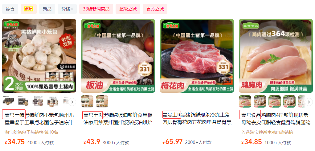 目前,壹号食品已对争议标识进行了系统性调整。《消费者报道》记者注意到,不同渠道和品类的处理方式存在微妙差异。在某电商平台的“壹号土旗舰店”,已注册商标的生鲜猪肉类产品在链接标题中标注“壹号土R”;腊肠、鲜肉包等深加工产品仍沿用“壹号土猪”表述;而鸡肉、鸡蛋类产品则统一冠以“壹号食品”。