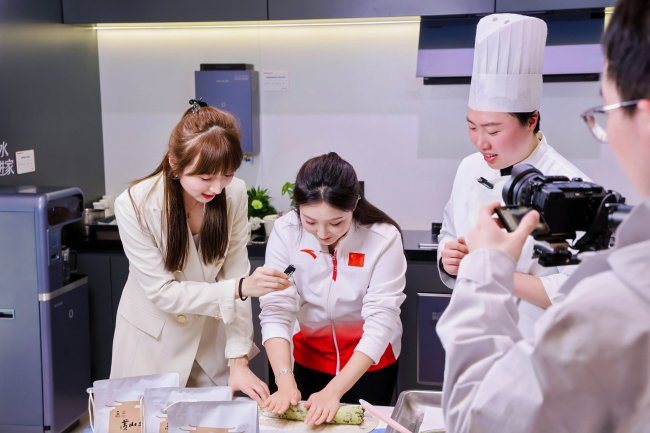 直播后半程,自由式滑雪世界冠军、长虹·美菱热雪体验官贾丽亚惊喜现身,与主播、达人一同品鉴非遗茶点,从冠军视角分享对智能生活和健康饮水的理解。她表示:“美菱新鲜厨房让我感受到科技带来的‘自由’——高效、精准、安心,让我有更多时间去享受生活的美好。”
