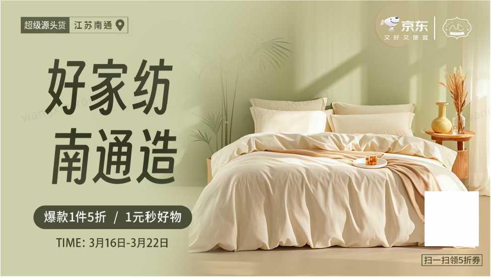 与此同时,京东携手63家南通源头工厂,整合京东与政府资源,打通从“源头好货”到“百姓床头”的直供链路,让“好家纺,南通造”的品质形象加速走进大众生活。即日起至3月22日,消费者打开京东APP搜索“超级源头货”或“南通家纺”,即可进入专属会场,超6万款家纺商品参与“1件5折起”活动,每日限量爆款开放1元秒杀,并可叠加领取南通市政府发放的满200减20、满500减50、满1000减100消费券,以实实在在的优惠,轻松把高品质家纺带回家。