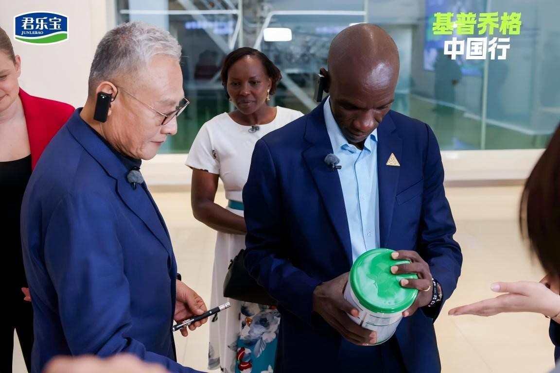 基普乔格表示,他由衷敬佩魏立华先生,不仅完成了全球马拉松六大满贯赛事,同时作为一位成功的企业家,三十多年来坚守乳业,带领君乐宝以世界级品质筑牢营养根基。“很荣幸成为君乐宝全球品牌代言人,当我走进君乐宝,看到世界级的设备、研发和管理,我放心了。我为我的孩子高兴,为所有肯尼亚的孩子感到开心。”他说,未来将与君乐宝并肩同行,让来自君乐宝的科学营养走向世界,助力全球儿童健康成长、突破自我。
