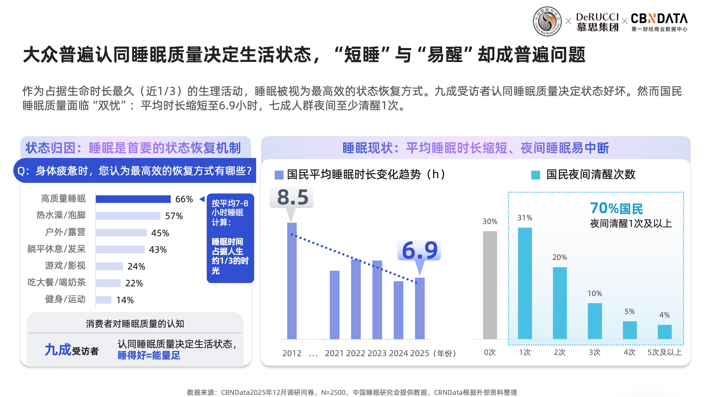 根据慕思发布的《2026脊椎健康与睡眠白皮书》数据显示,2025年我国居民平均睡眠时长仅为6.97小时,未达到7小时的健康睡眠标准。在这场跨度十余年的持续跟踪调查中,慕思发现国民平均睡眠已经从2012年8.5小时悄悄减少。这减少的1.6小时,背后是无数现代人在高压生活下被透支的健康资产和精力。