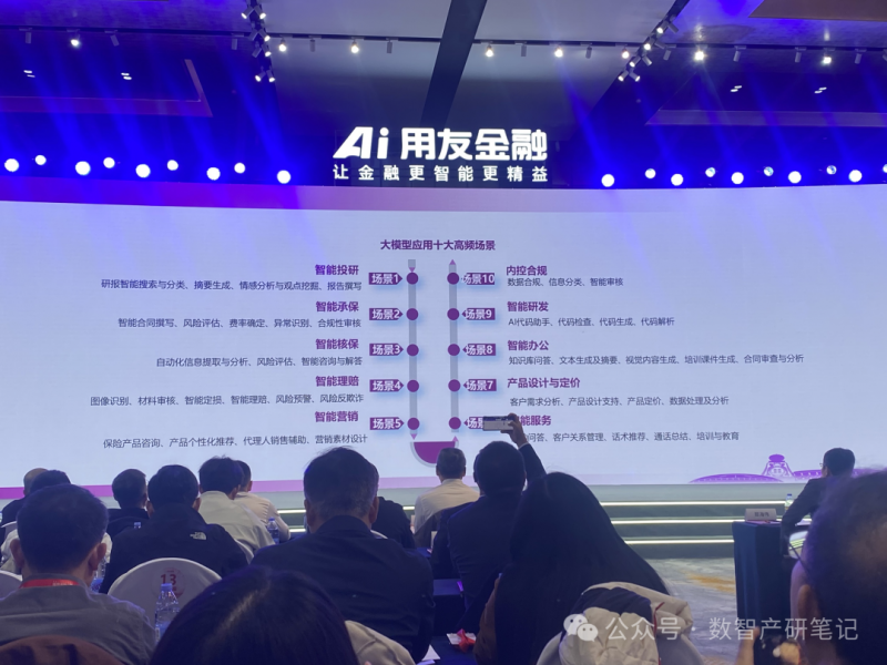 峰会展板清晰展示的"金融大模型十大高频场景"和AI能力思维导图,为我们提供了一份珍贵的"落地导航图"。