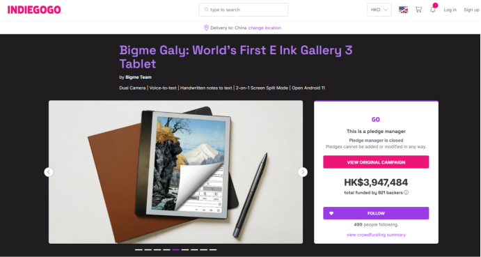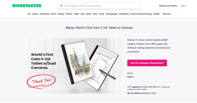 到了2023年,Bigme大我的节奏明显加快。先是推出了全球首款Kaleido 3彩色墨水屏智能办公本inkNote Color,在Kickstarter和Indiegogo上众筹了80万美元,帮更多受干眼症困扰的人解决了屏幕焦虑。紧接着又发布了全球首款Gallery 3彩色墨水屏智能办公本Galy,众筹近70万美元,把屏幕清晰度又往上推了一个台阶。同年全球首款彩色墨水屏一体机B251,直接杀进了桌面办公场景,众筹26万美元。这几波操作下来,Bigme大我已经实打实在国际市场上站稳了脚跟。