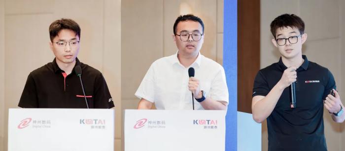 大会现场,神州鲲泰解决方案专家 薛强、王瑞福、冯子普依次登场,分别围绕产品体系、行业标杆案例、教育行业专属解决方案进行深度分享,全面展现公司硬核技术实力与成熟落地能力。