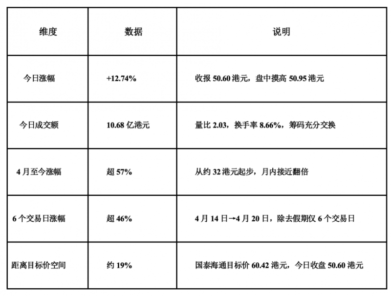 今日午后更是一度涨超10%,全天维持强势,收盘站稳50港元关口。