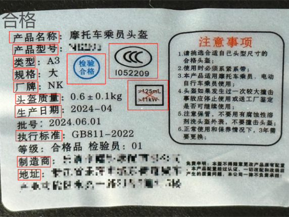 ③ 认准3C认证、新国标。由于摩托车头盔已纳入3C认证,购买摩托车头盔时需认准3C认证,还需要认准是否标注执行新国标GB 811—2022《摩托车、电动自行车乘员头盔》。
