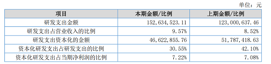 2025年研发投入达到1.53亿元,同比增长24.09%,占营收比重9.57%。过去三年,研发投入从1.04亿元增至1.53亿元,增幅近50%。研发人员增至242人,占公司总人数24.85%,全年新增发明专利授权43项,其中国际专利22项。