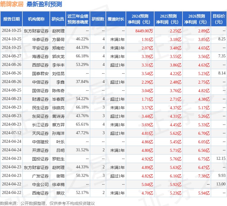 以下是详细的盈利预测信息: