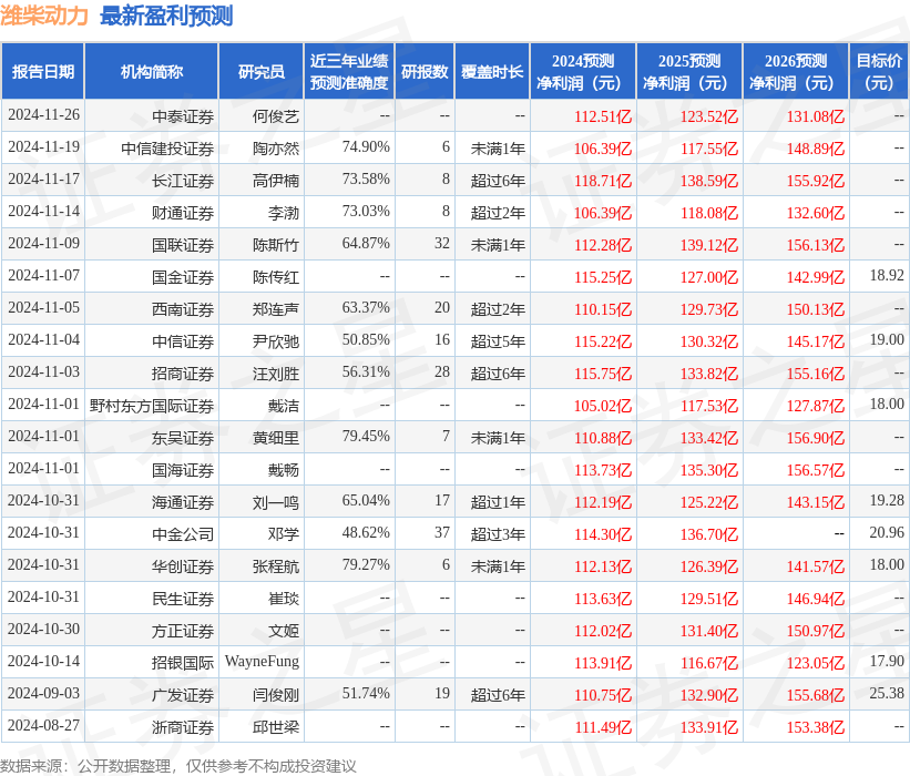 以下是详细的盈利预测信息: