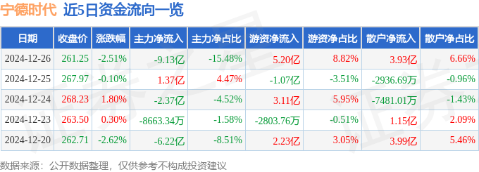 12月26日的资金流向数据方面,主力资金净流出9.13亿元,占总成交额15.48%,游资资金净流入5.2亿元,占总成交额8.82%,散户资金净流入3.93亿元,占总成交额6.66%。