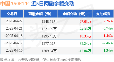 证券之星消息,4月22日,中国A50ETF(563000)融资买入65.85万元,融资偿还38.22万元,融资净买入27.63万元,融资余额1248.71万元。