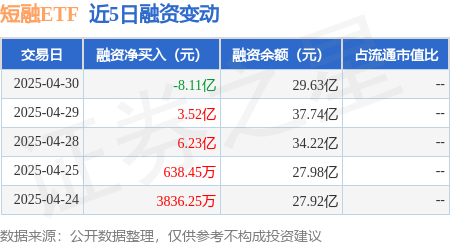 证券之星消息,4月30日,短融ETF(511360)融资买入7.9亿元,融资偿还16.01亿元,融资净卖出8.11亿元,融资余额29.63亿元。