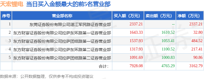 证券之星消息,沪深交易所2025年9月8日公布的交易公开信息显示,天宏锂电(873152)因当日换手率达到20%的前5只股票,当日价格振幅达到30%的前5只股票登上龙虎榜。此次是近5个交易日内第3次上榜。