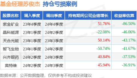 苏俊杰管理的鹏华沪深300ETF基金在23年4季度买入紫金矿业,在持有1年又0个季度后在24年4季度卖出。持有期间的估算收益率为-86.5%,持有期间紫金矿业在2023年到2024年的年报归属净利润增幅达51.76%。