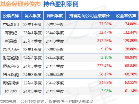 以下为苏俊杰所任职基金的部分重仓股调仓案例: