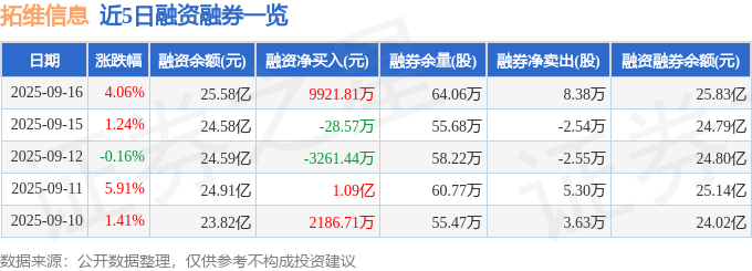 拓维信息融资融券信息显示,融资方面,当日融资买入5.15亿元,融资偿还4.15亿元,融资净买入9921.81万元。融券方面,融券卖出10.72万股,融券偿还2.34万股,融券余量64.06万股,融券余额2509.68万元。融资融券余额25.83亿元。