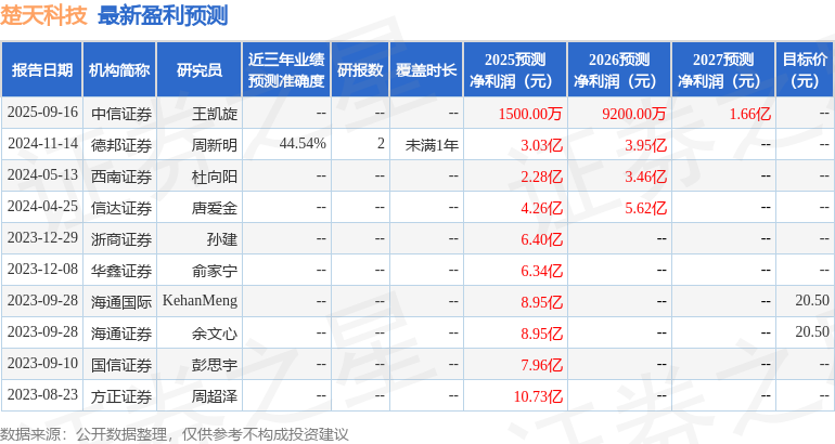 以下是详细的盈利预测信息: